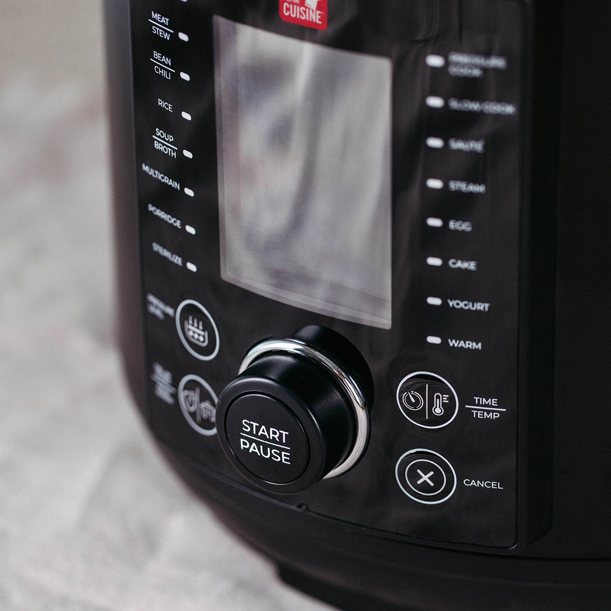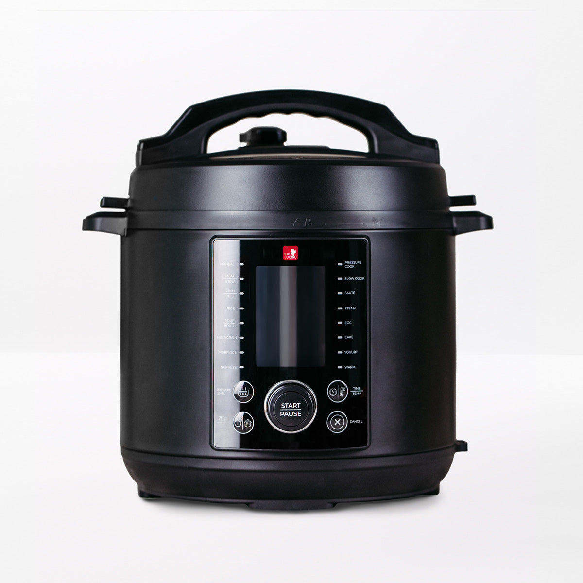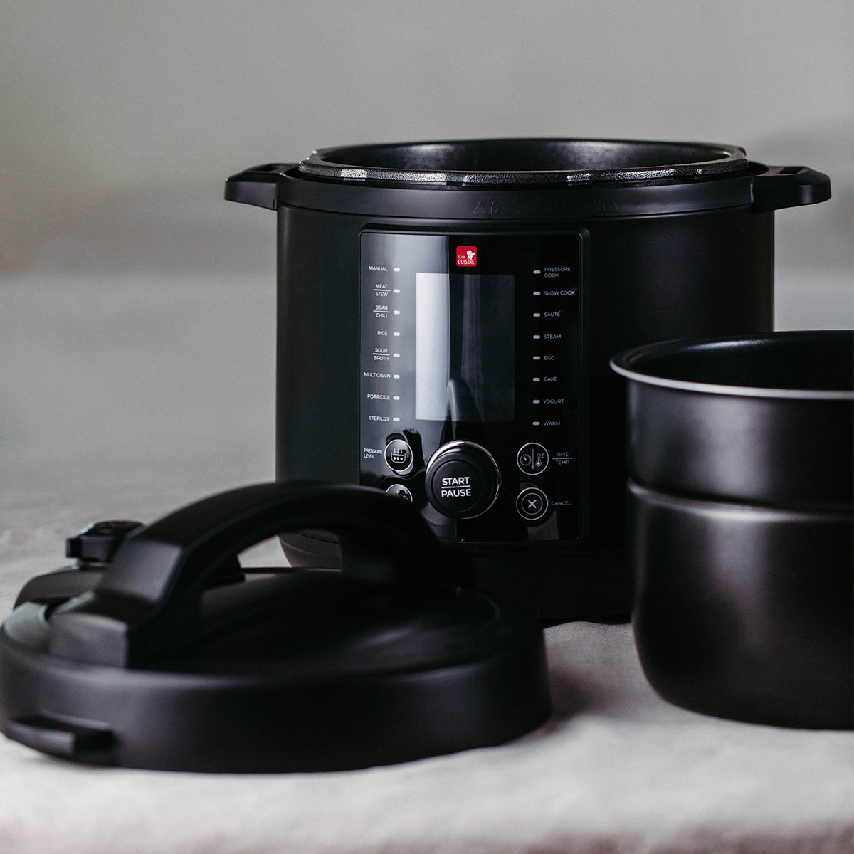 Der Dampfdrucktopf von TEAM CUISINE bietet mehr als 15 voreingestellte Modi: sauté, steam, warm, yoghurt, pressure cook, slow cook, niedrige und hohe Druckstufen für optimales Garen.